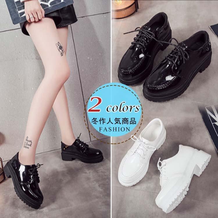 スニーカー 白 プラットフォームシューズ 厚底 エナメル ローファー レースアップ シューズ 歩きやすい 新作 秋冬 秋物 かわいい レディース カジ Cttt30619 Chobo 通販 Yahoo ショッピング