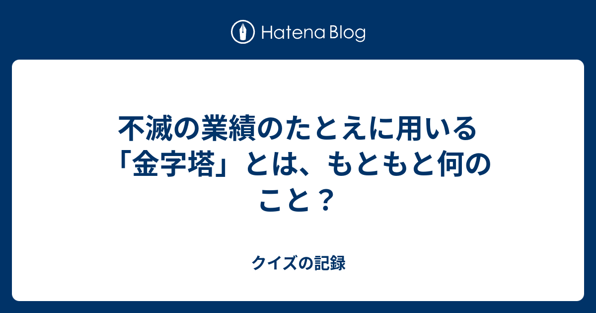 不滅の業績のたとえに用いる 金字塔 とは もともと何のこと クイズの記録